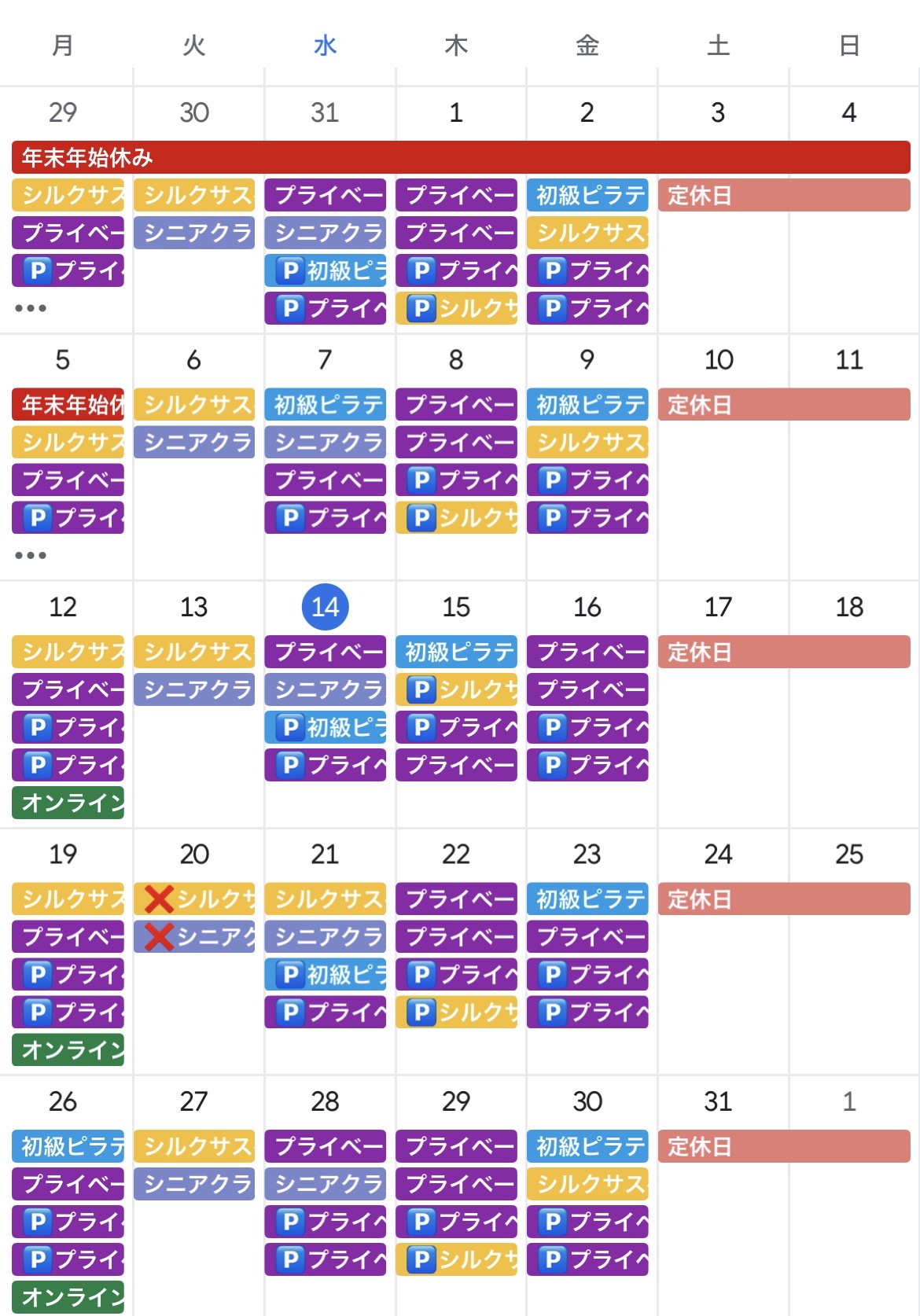 🅿️は午後からのレッスンです。時間などお確かめください。